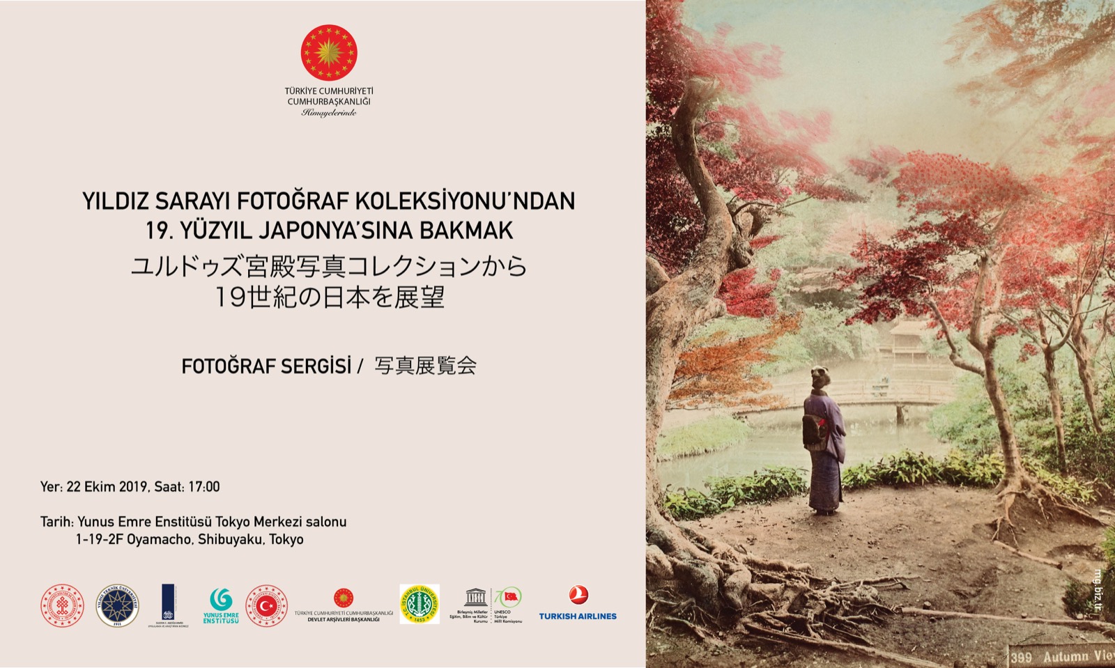 Yıldız Teknik Üniversitesi, Sultan II. Abdülhamid Uygulama ve Araştırma Merkezi tarafından “T.C Cumhurbaşkanlığı Himayelerinde” yürütülen, Kültür ve Turizm Bakanlığı, Dışişleri Bakanlığı, T.C. Cumhurbaşkanlığı Devlet Arşivleri Başkanlığı, Yunus Emre Enstitüsü ve İstanbul Üniversitesinin desteği ile gerçekleşecek “Yıldız Sarayı Fotoğraf Koleksiyonu’ndan 19. Yüzyıl Japonya’sına Bakmak” isimli proje kapsamında hazırlanan serginin açılışı 23 Ekim 2019 tarihinde Kültür ve Turizm Bakanı Sayın Mehmet Nuri Ersoy tarafından Tokyo Yunus Emre Enstitüsünde yapıldı.